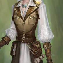 晶莹的小虫们落在她的探险帽上,带着花草印纹的薄纱遮挡着她的脸庞。她干练而又迷人,如同绽放于荒原的花朵。