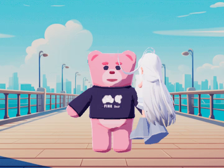 粉红小熊 走着走着,看到一只小粉熊 但是心情不好(๑•́ωก̀๑) 一拥抱它,温暖就来了(σ′▽‵)