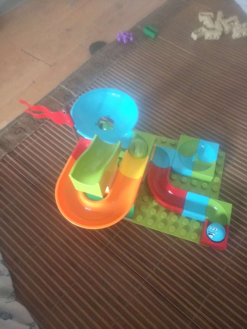 2、丢橙色U型拐弯的左处,它会缓慢经过黄色与绿色的滑道到旋转漏斗里面