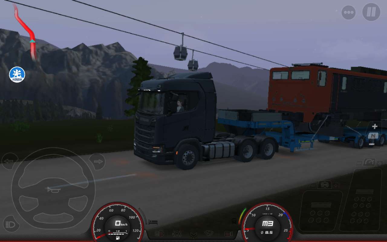 用斯坦尼亚,在阿尔卑斯山。底盘6X6。V8发动机。扭矩3300Nm,拉的动。油耗999.5