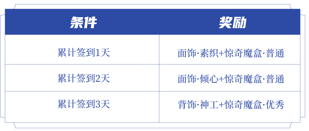 本周五至周日,累计签到送元流之子饰品(面饰·素织、面饰·倾心、背饰·神工)及惊奇魔盒!