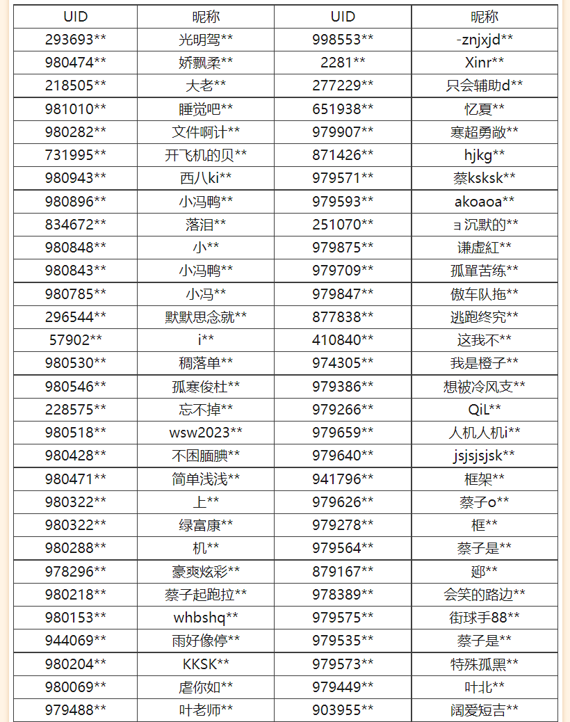 《王牌竞速》筹备组一直保持对制作、销售、使用外挂的行为“零容忍”的高压打击态度,在严谨公正的基础上,对违规行为予以严厉处罚。S21赛季开启以来,女警小伊在速度节共开出1903张封停罚单,处理上万起违规事件,以下为部分封禁名单。