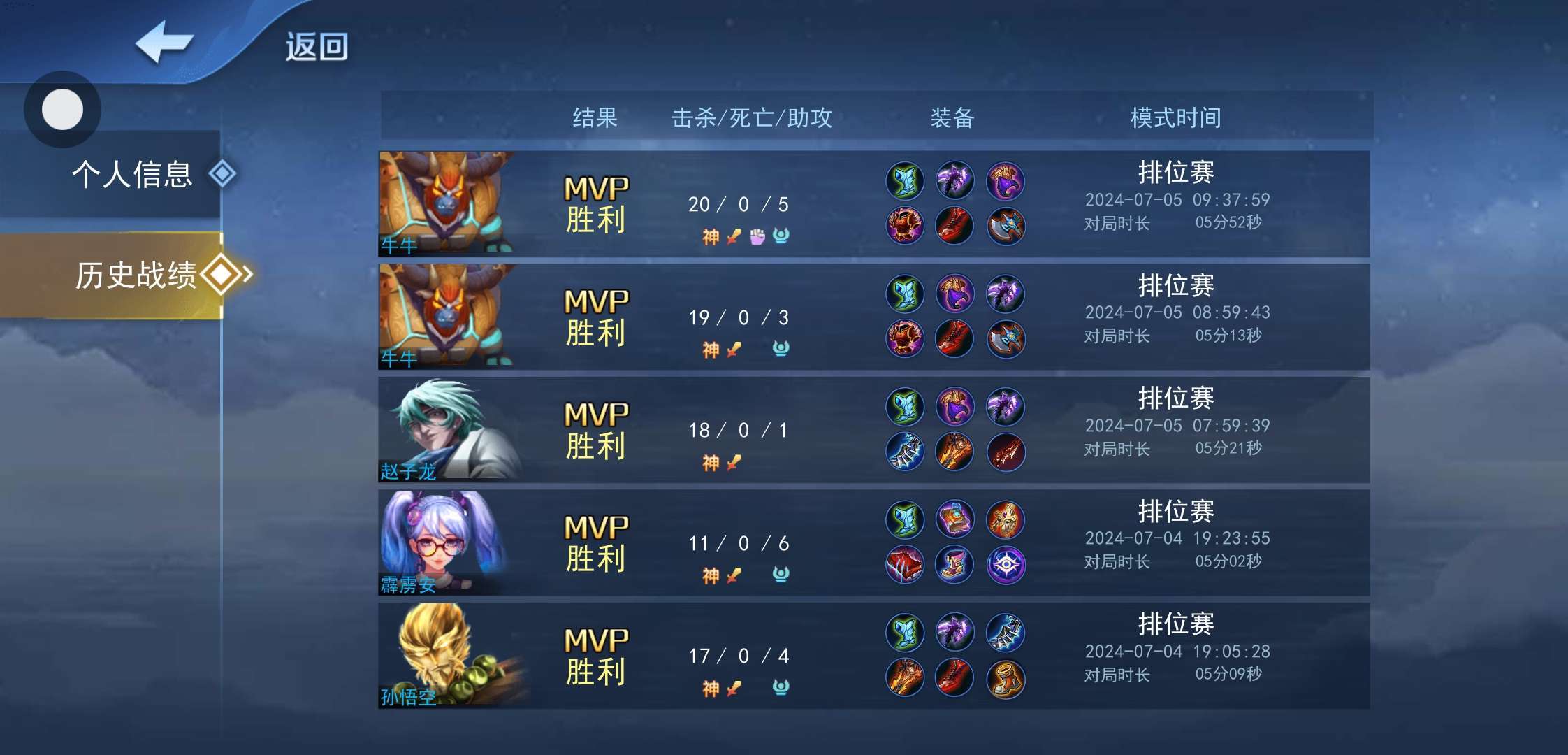 胜率100%,百战百胜,每一场都是MVP,希望各位大佬评价一下