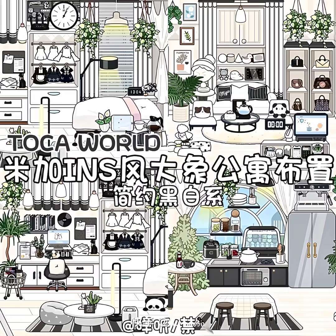米加小镇大象公寓的布置黑白色的公寓,大家可以点一个关注,谢谢大家