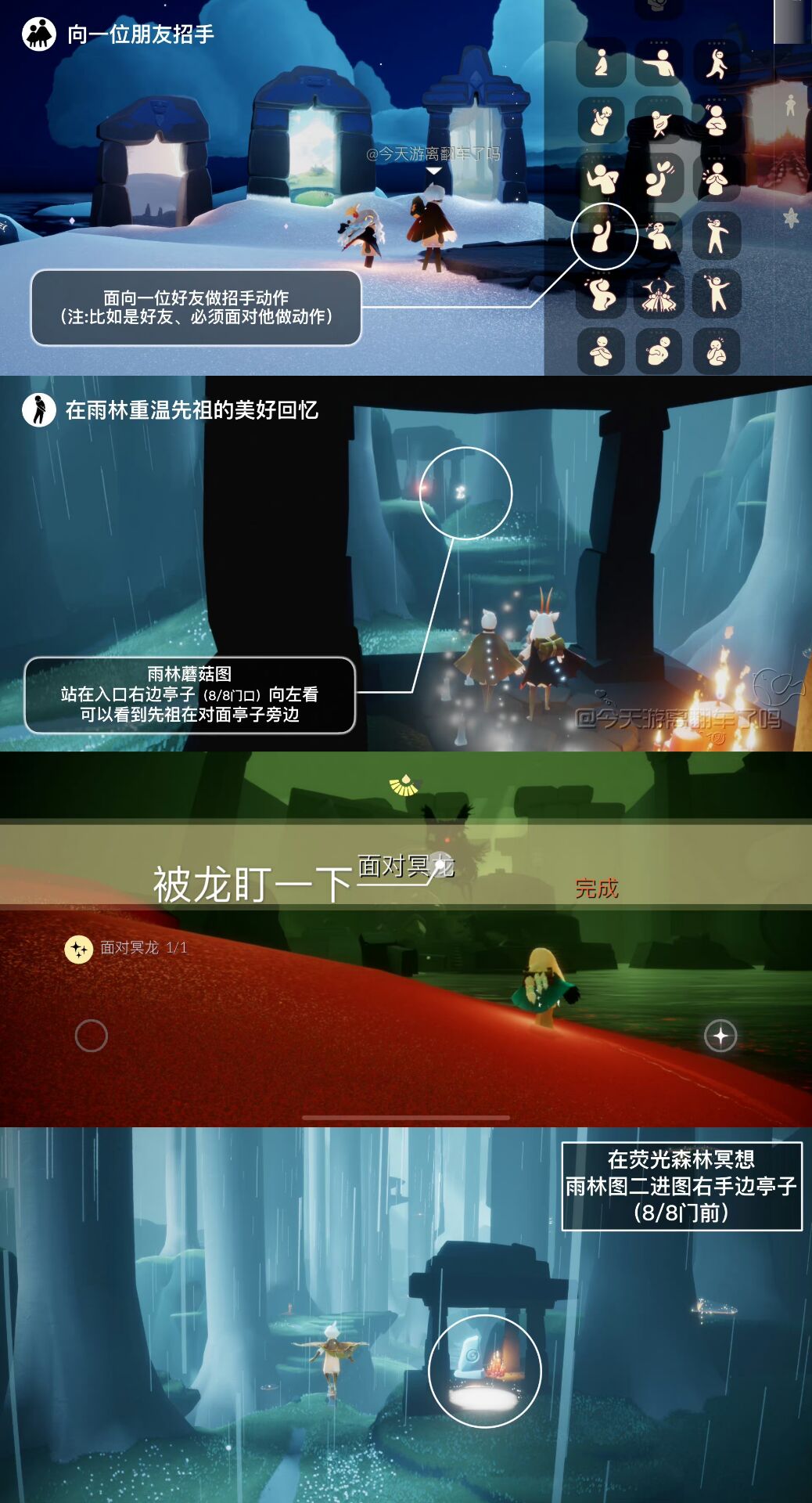 「在荧光森林冥想」在雨林荧光水母图一进去右手边的亭子(8/8入口门前)内石碑前光圈处打坐并留言