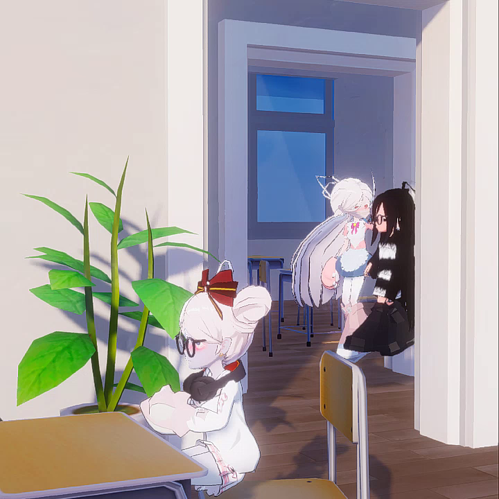 阳光下门口处两大美女路过一小可怜写作业