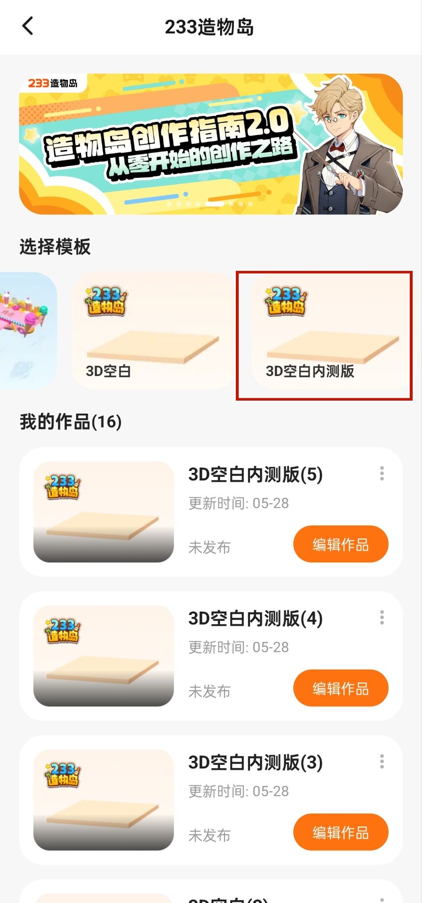 哈喽各位造物岛先遣小队的队员们,造物岛内测版本已经可以开始体验啦!本次开启内测的是空白模板~