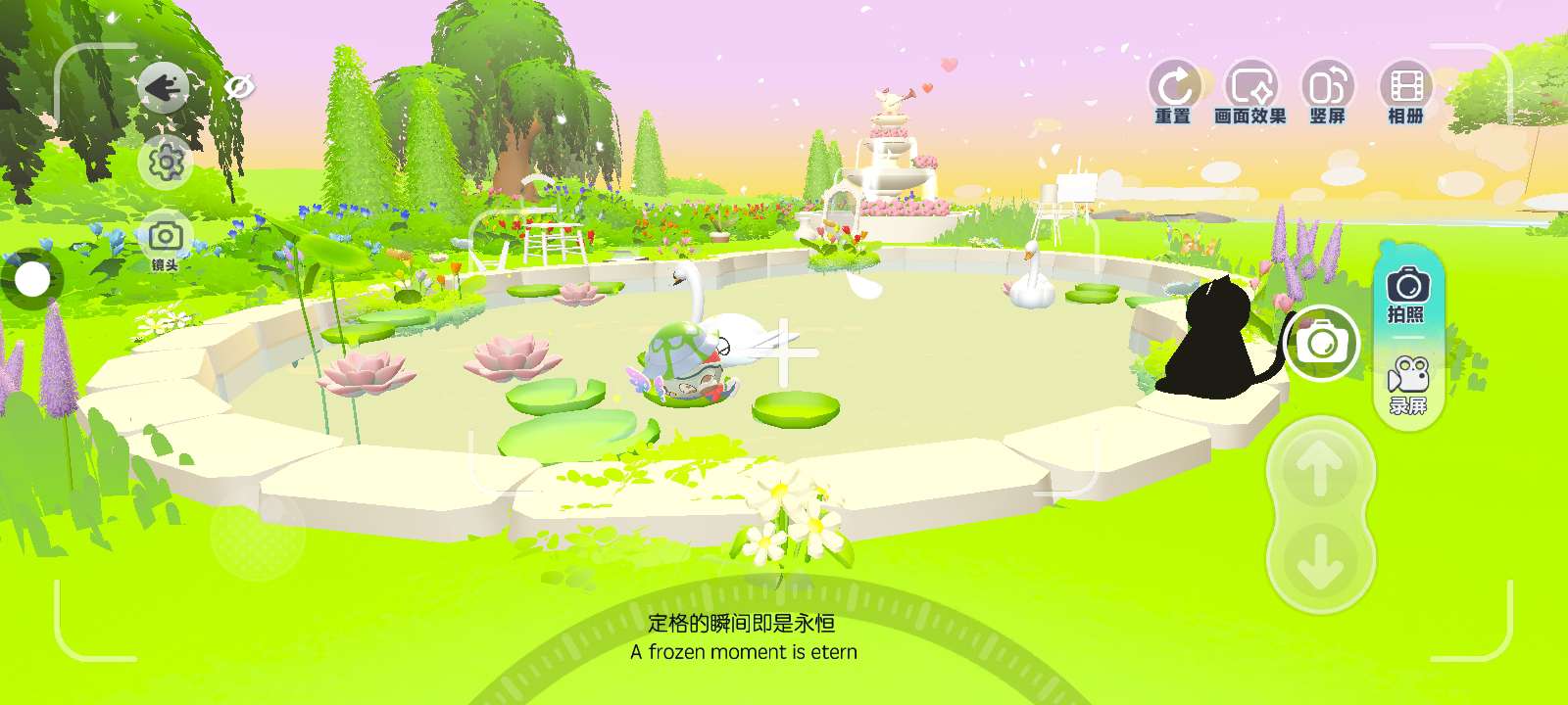 这里是一个大池塘,里面有很多很多装饰物🙉🌈,有个猫猫坐在池塘边上十分可爱!食堂里面的荷叶是可以坐的哦✨就连天鹅一样!(打不过小心卡住)