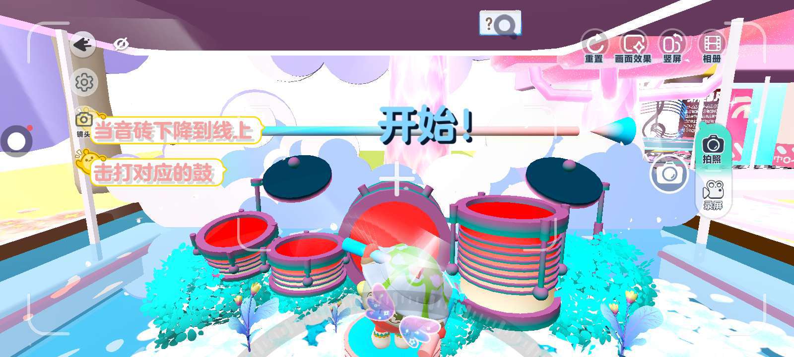 音砖会从上面一个一个下来😳,只需要点击对应的鼓就行了(如果是连续要连续点,比如黑色的下来了就需要点!)这里也是非常有趣的啦~