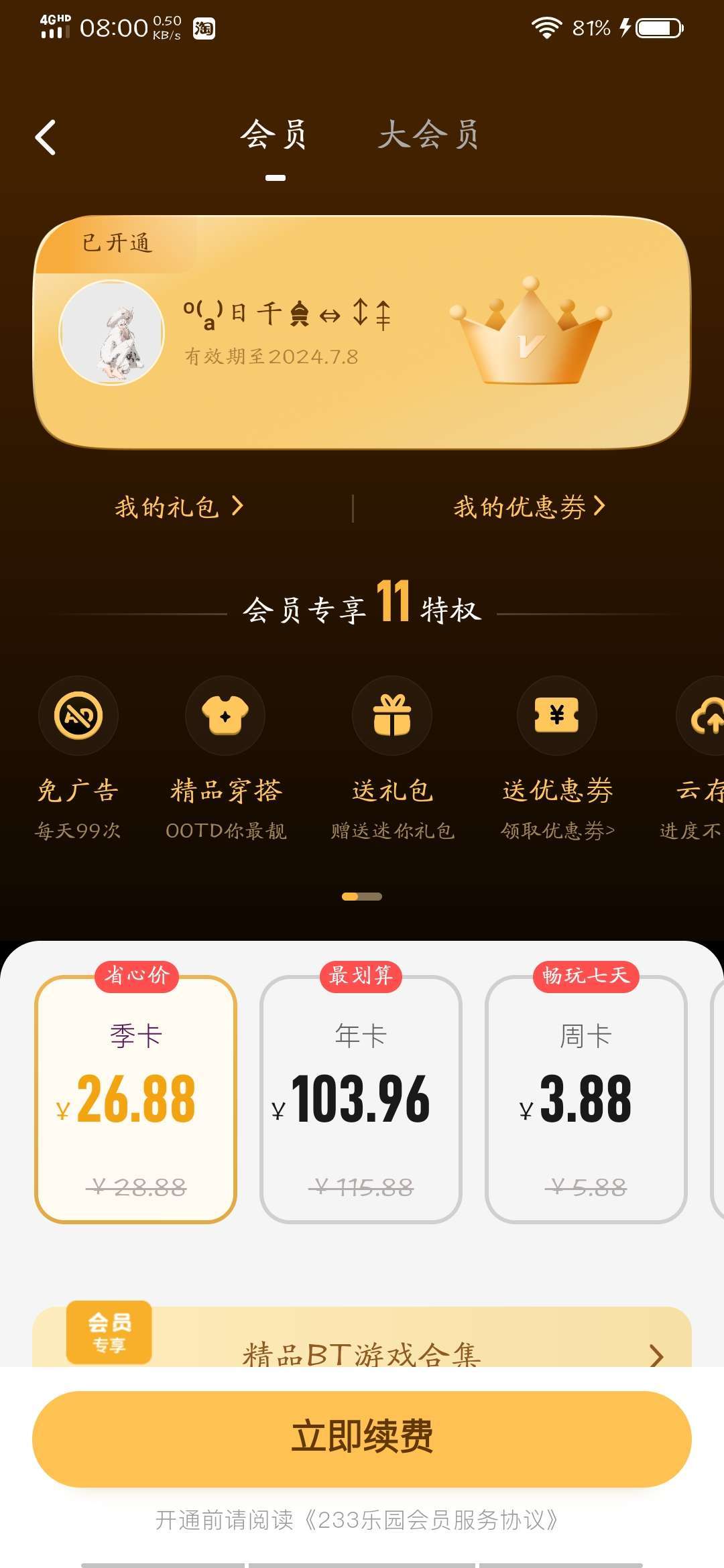 关于我没充过会员,但是却有会员这件事……