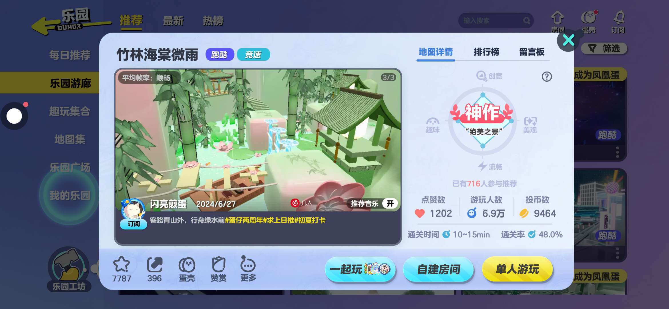 地图介绍:竹林环绕四周,跑酷也是层层分明,绿色的气息扑面而来,真的超级喜欢这种绿色的跑酷。