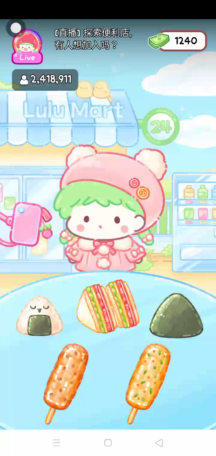 更新宠物!!! 「你进行草莓糖葫芦吃播的话,我就赞助100元。」 「脆口的声音太迷人了(°θ°)」 由于客人都被最近新开的许多糖葫芦店家抢走,曾经号称糖葫芦达人的父母因此卧病在床。 继承父母店面的主角露露开始糖葫芦吃播来宣传店面。 直到成为真正的糖葫芦达人那一天! 「今天我也要开始糖葫芦直播罗!( •o• )」 [串材料] 只有新鲜的水果的话,很难以一名吃播实况主存活下来。还要有松饼、地球软糖、青阳辣椒!利用奇特的材料制作糖葫芦吧。 [裹糖衣] 将材料串满竹签的话,就放进锅子搅动吧。唯有利用达人的秘法,才能裹出又薄又脆的糖衣。 [即时吃播] 咔哒咔哒!今天的吃播也大成功。热烈的聊天内容看起来反应也不错。看来得利用完成观众任务得到的赞助金来买新材料了! 来,准备好了吧?现在就马上挑战成为糖葫芦达人吧!