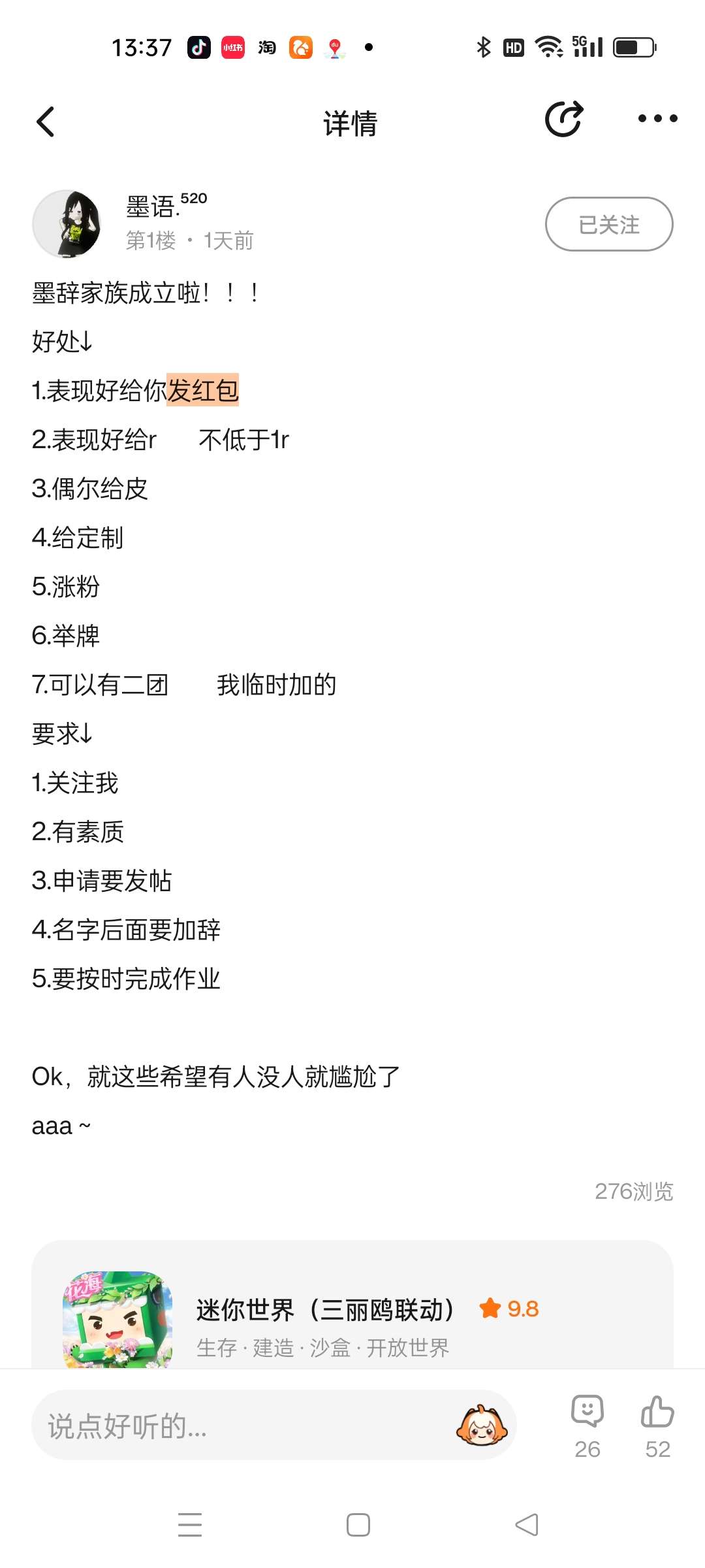 申请加入墨辞家族,有树枝,最后祝莫辞家族蒸蒸日上😘😘😘