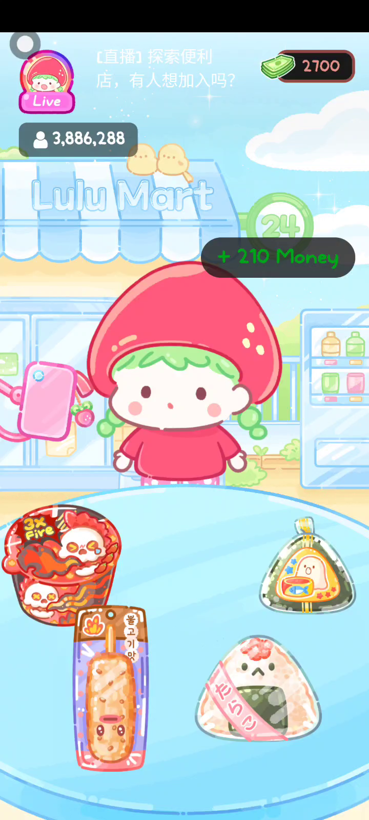 更新宠物!!! 「你进行草莓糖葫芦吃播的话,我就赞助100元。」 「脆口的声音太迷人了(°θ°)」 由于客人都被最近新开的许多糖葫芦店家抢走,曾经号称糖葫芦达人的父母因此卧病在床。 继承父母店面的主角露露开始糖葫芦吃播来宣传店面。 直到成为真正的糖葫芦达人那一天! 「今天我也要开始糖葫芦直播罗!( •o• )」 [串材料] 只有新鲜的水果的话,很难以一名吃播实况主存活下来。还要有松饼、地球软糖、青阳辣椒!利用奇特的材料制作糖葫芦吧。 [裹糖衣] 将材料串满竹签的话,就放进锅子搅动吧。唯有利用达人的秘法,才能裹出又薄又脆的糖衣。 [即时吃播] 咔哒咔哒!今天的吃播也大成功。热烈的聊天内容看起来反应也不错。看来得利用完成观众任务得到的赞助金来买新材料了! 来,准备好了吧?现在就马上挑战成为糖葫芦达人吧!