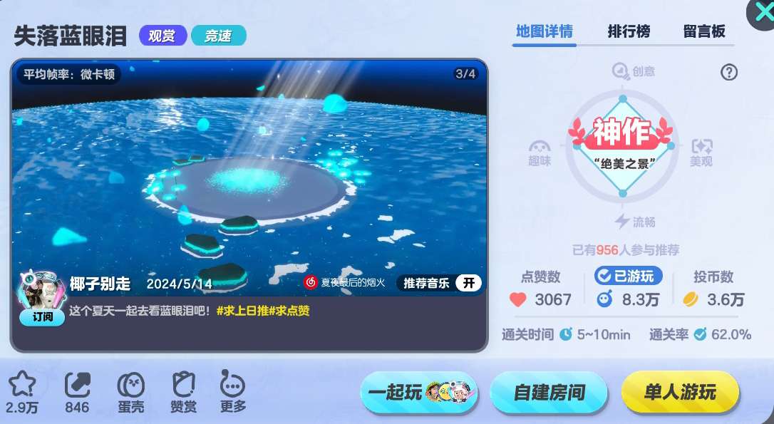 点评:地图的每一处场景都非常梦幻,梦幻般的蓝色,如同仙境般美丽!