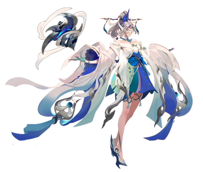 以明末清初通俗小说中常见的“血滴子”为灵感原型进行设计,沿用暗器的属性,改变其残忍的特性,融入“锋利”“飘逸”等元素。她的武器唤作“听锋”,寓意招式之快,敌人只来得及听到锋刃破空之声。同时,以锋利之芒斩断过往恩怨情仇,营造出快意江湖的武侠意境。