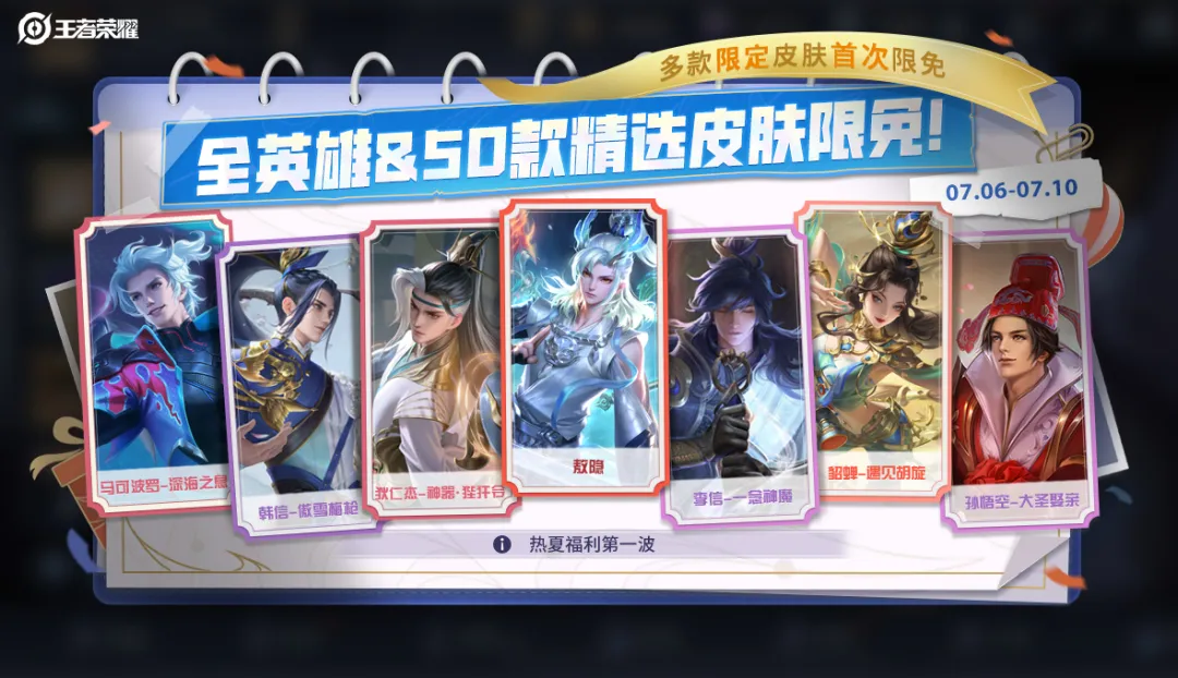 全英雄(含敖隐)&50款精选皮肤限免,多款限定皮肤首次限免!