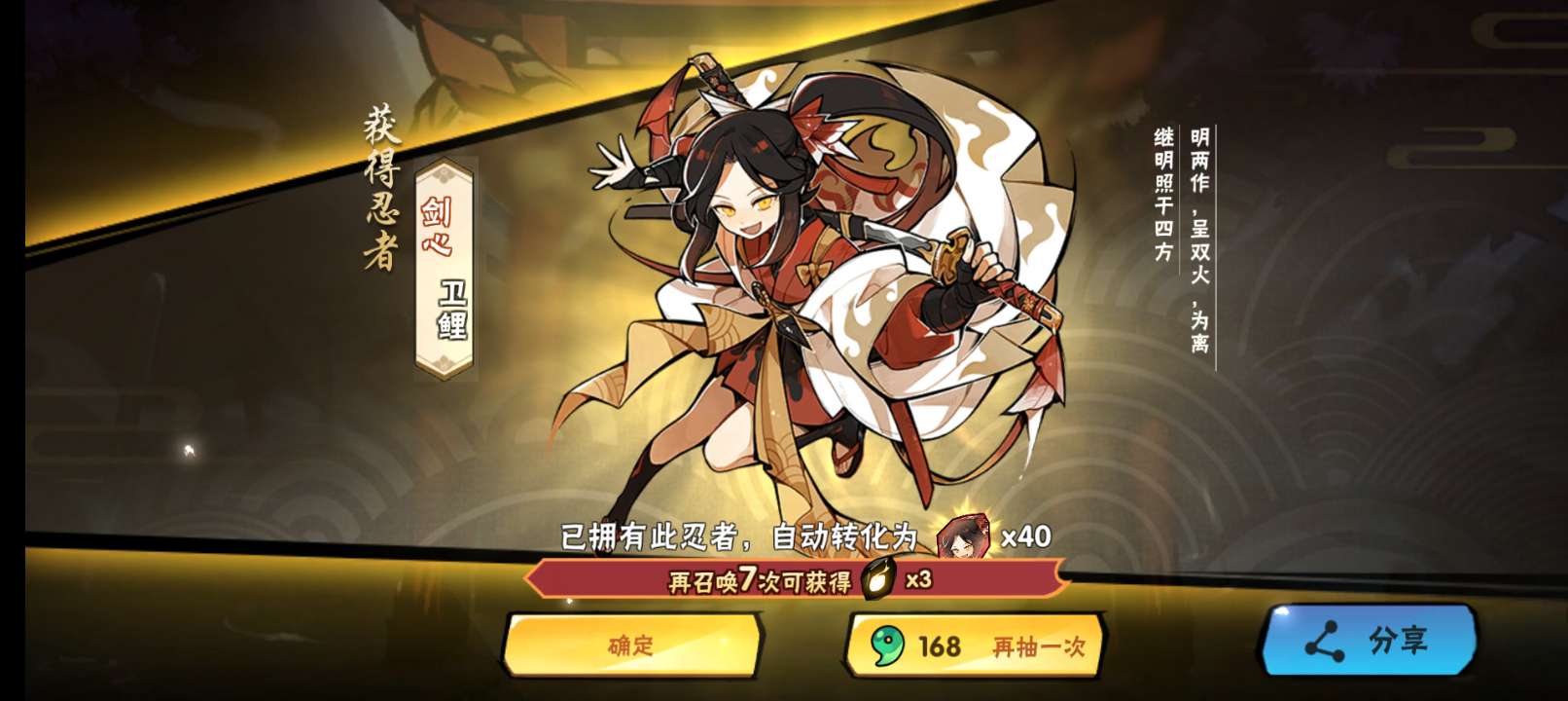 新忍者稳了,天数还长,150抽都绰绰有余了