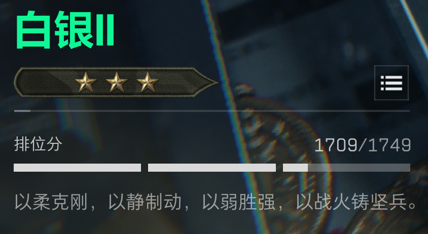 不同的分数区间对应着不同的段位等级,在烽火地带主界面,点击“排位”选项,即可查看你的当前段位,以及不同段位分对应的段位等级。