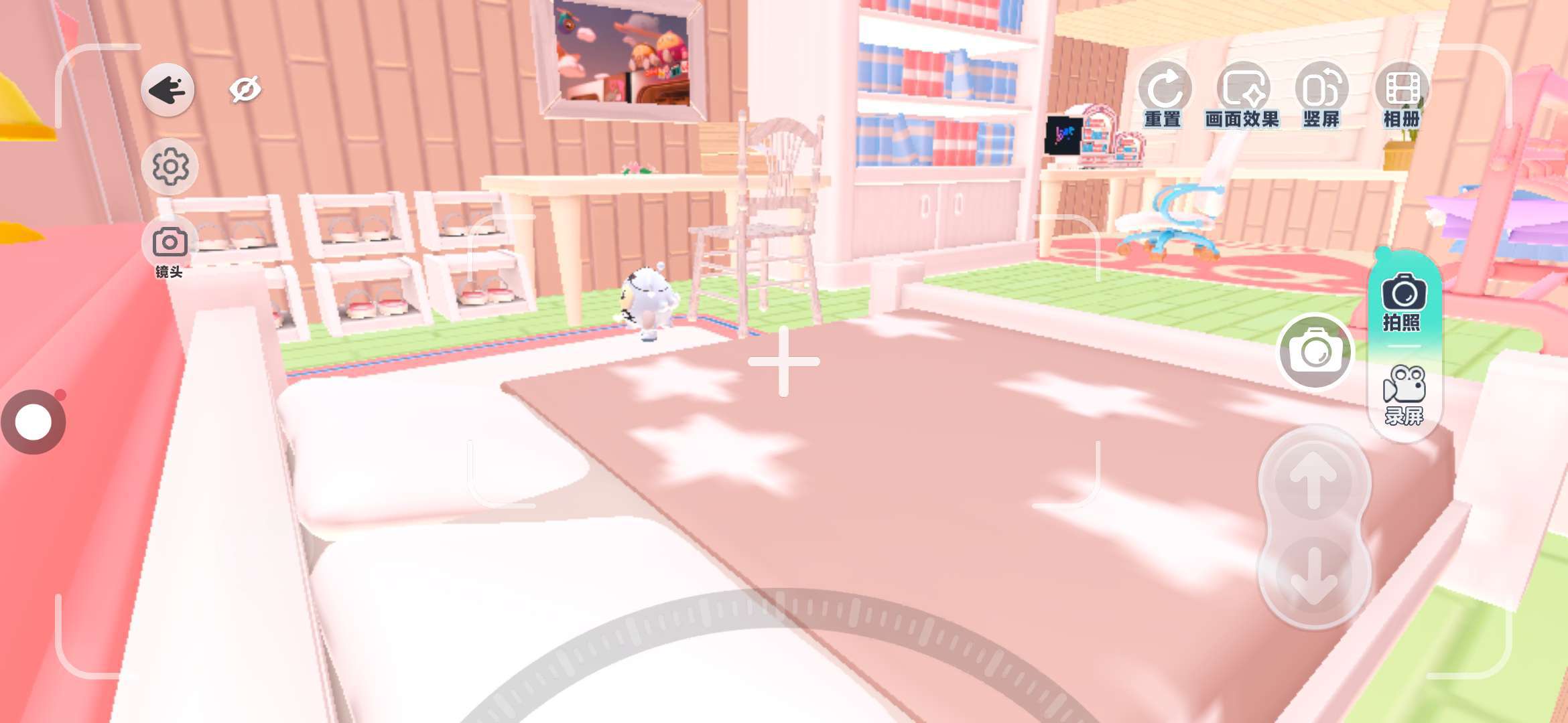 哇,我来到一个粉粉嫩嫩的小房间,真的超级好看可爱呢,满满的少女风,整个房间的布局也是很喜欢这里,要收集花环,首先要上到椅子上,然后在桌子上拾取就可以去下一个场景了
