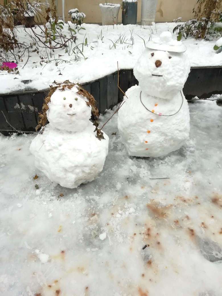我推的,不知道为什么有人那么爱踢雪人,幸好上面的碗没碎,可里面的石头和玻璃不见了……