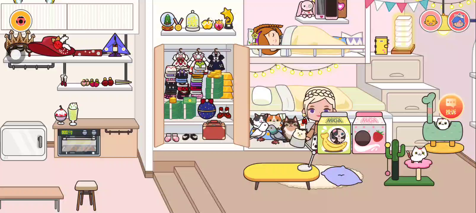 火爆抖音的米加小镇世界是一款简单休闲的免费模拟互动小游戏。玩家将扮演一位米加小镇的居民,这里是一个没有烦恼的宁静地方,在这里你可以自定义自己的衣服、发行、妆容,创建自己的个性形象 在场景当中自由的探索,和小镇上的各位居民进行互动,开车前往海滩边上放松,享受美食。 是的,这里没有特定的游戏目标,你只需要根据自己的喜好来操作人物,当然开心的小镇生活少不了朋友的陪伴,你甚至可以创建出你的好朋友,让他加入你的快乐小镇生活。 完全自由的探索玩法,上亿种触发事件,快来米加我的小镇寻找隐秘的宝藏吧! 米加小镇游戏特色 1、在这里尽情发挥自己的创意,做任何你想做的事情。 2、超过上亿种奇妙互动。 3、没有时间限制,没有分数排行,享受宁静平和的小镇时光 4、各种各样的自定义装扮,设计你的专属形象 游戏玩法 游戏没有设定的目标,玩家可以自由探索各个场景 1、海滩美食街:和朋友们一起来一场沙滩排球,发现岛屿上的发现隐藏的秘密宝藏,享受各种美食 2、服装店:购买你喜欢的衣服,进行自由的服装搭配 3、公寓:随时回到家里,和爷爷奶奶一起度过晚餐,或者叫上你的朋友们一起开一场热烈的party 4、美发沙龙:在这里自定义你的发型和发色,还可以叫上朋友一起 5、sPA沙龙:来做一个面部SPA好好休息一下吧,还可以定制自己的妆容 6、停车场:在外面奔波累了吧,把车停在这里回家享受美好时光 当觉得自己之前安排的人物不恰当时,或者觉得他们站位有问题时,或者想重新安排他们时,重置键你值得拥有!