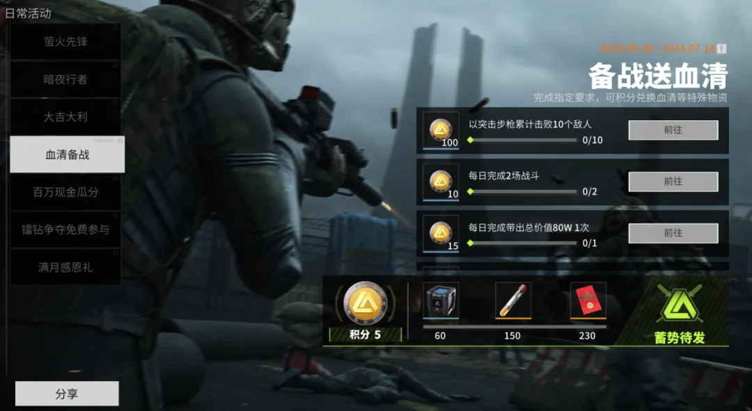 还有萤火虫不知道吗?800W一根的血清只要每天完成任务就可以免费拿到啦!在6月30日-7月14日期间,在游戏内点击右上角的活动入口,在日常活动一栏中参与活动“血清备战”,完成相应的任务积分,即可兑换到珍贵的靶向血清。小萤已经拿到啦,现在还有时间,还没拿到的萤火虫抓紧哦!