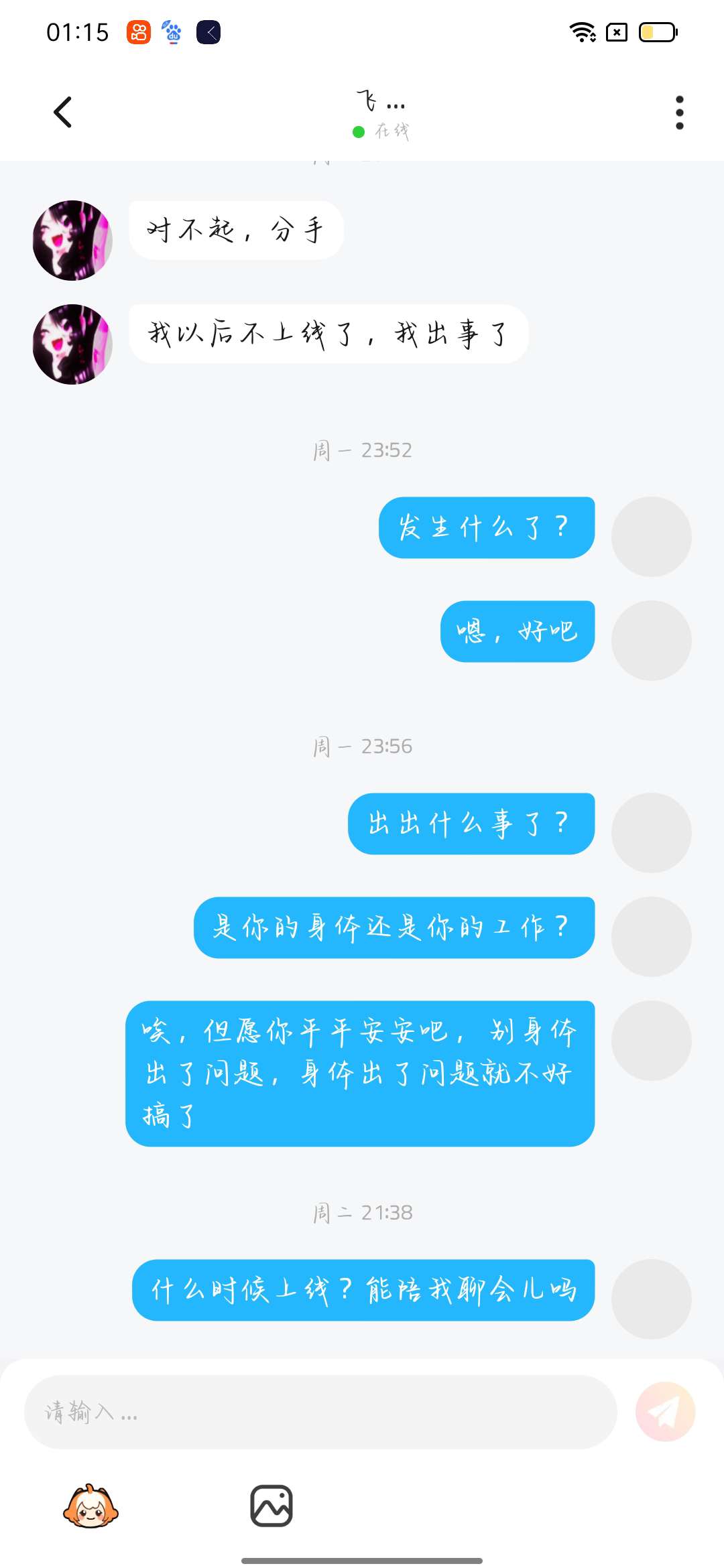 知道你退游有原因,可你再次上线,第1句话就是你出事了分手?