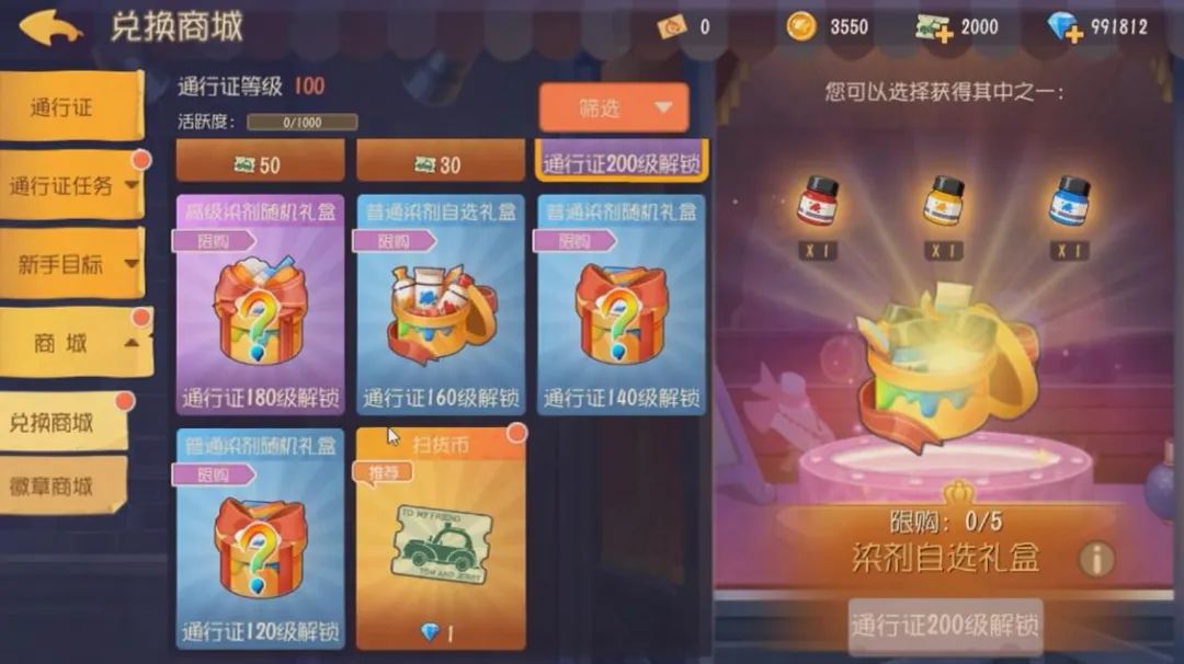普通染剂自选礼盒:开启后可以选择获得红色、黄色、蓝色染剂之一。