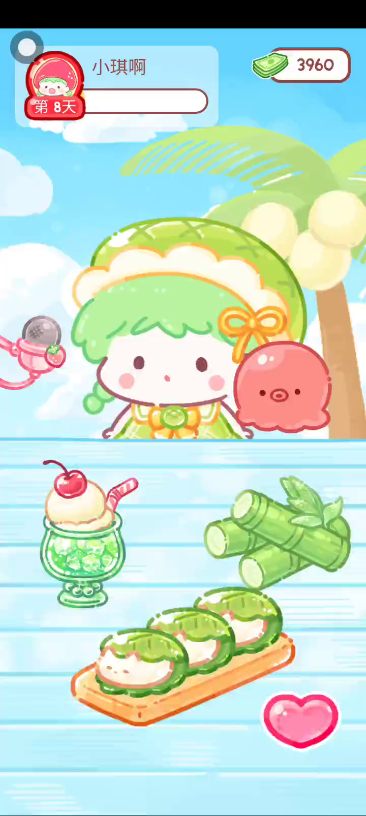 更新宠物!!! 「你进行草莓糖葫芦吃播的话,我就赞助100元。」 「脆口的声音太迷人了(°θ°)」 由于客人都被最近新开的许多糖葫芦店家抢走,曾经号称糖葫芦达人的父母因此卧病在床。 继承父母店面的主角露露开始糖葫芦吃播来宣传店面。 直到成为真正的糖葫芦达人那一天! 「今天我也要开始糖葫芦直播罗!( •o• )」 [串材料] 只有新鲜的水果的话,很难以一名吃播实况主存活下来。还要有松饼、地球软糖、青阳辣椒!利用奇特的材料制作糖葫芦吧。 [裹糖衣] 将材料串满竹签的话,就放进锅子搅动吧。唯有利用达人的秘法,才能裹出又薄又脆的糖衣。 [即时吃播] 咔哒咔哒!今天的吃播也大成功。热烈的聊天内容看起来反应也不错。看来得利用完成观众任务得到的赞助金来买新材料了! 来,准备好了吧?现在就马上挑战成为糖葫芦达人吧!
