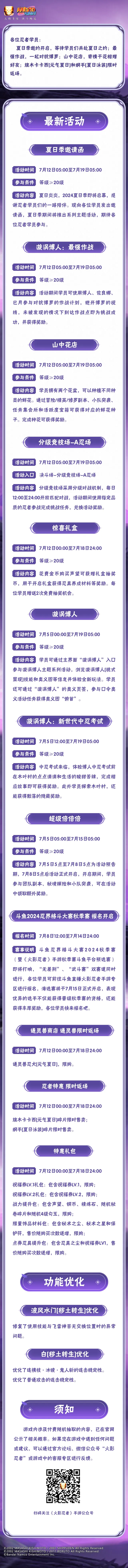 2024年ChinaJoy将于7月26日-7月29日在上海新国际博览中心举行,魔方工作室展台设立在N4馆的腾讯游戏展区,现场打卡有机会获得宇智波斑「秽土转生·解」和漩涡博人「桃式显现」的角色海报、《火影忍者》手游8周年徽章、披风等周边奖励!