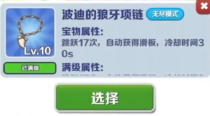第二个就是波迪的狼牙项链,跳跃17次后会自动获得滑板,最关键的是如果用宝物激活滑板,并不会消耗你原本的滑板数量,性价比直接拉满。
