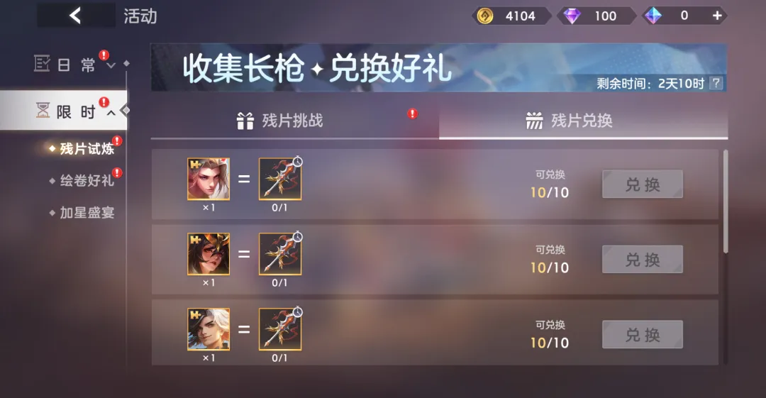 完成任务可获得兑换物长枪,长枪可用于兑换赛季英雄残片等好礼