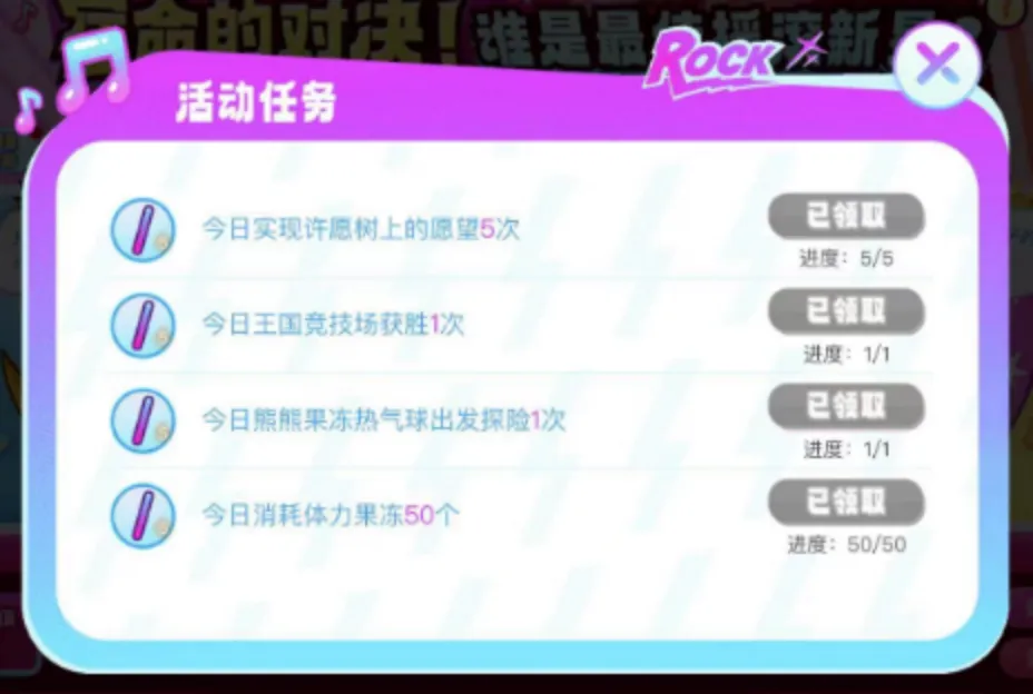 使用每个应援棒可以为支持的摇滚新星增加1点应援值,并随机获得灿烂的光之碎片、体力果冻等奖励。