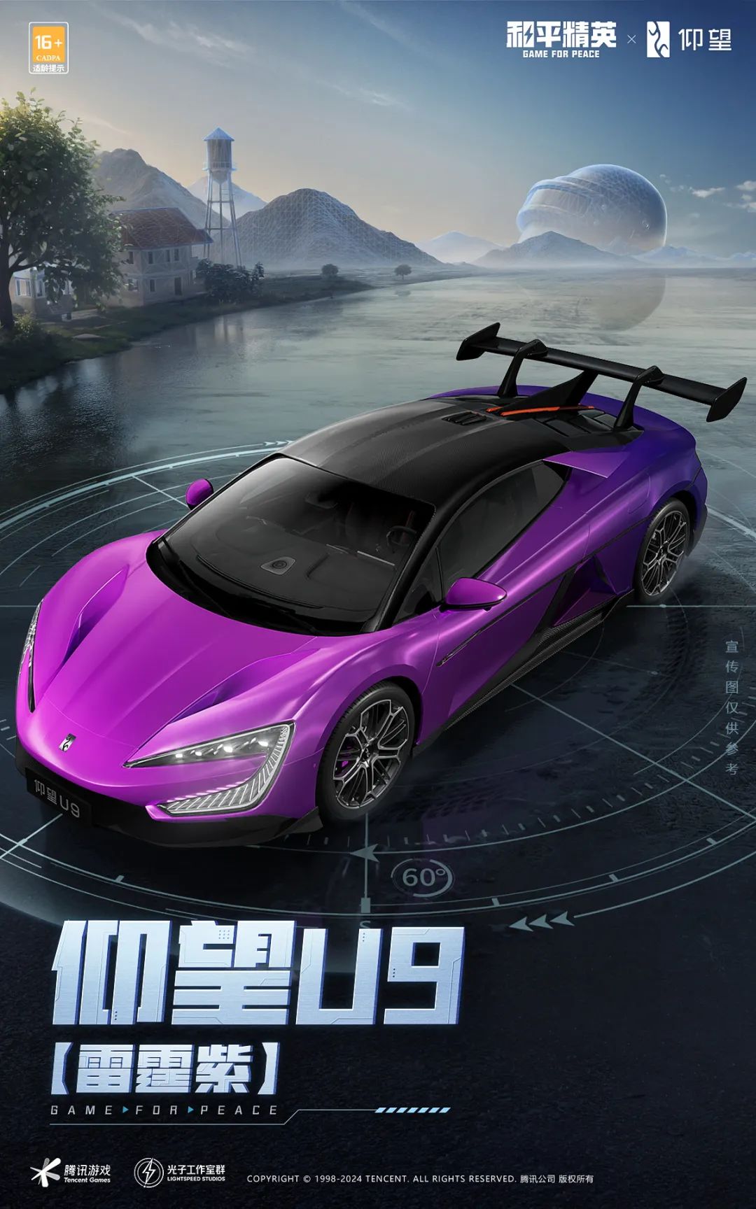 值得一提的是,除去以上基于「仰望」系列实车还原的华丽配色外,全系于《和平精英》中均支持升级为独具魅力的雷霆紫版本。