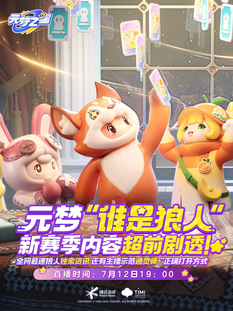 最后最后,星妹还有一条重磅消息告诉所有星宝们锁定7月12日19:00元梦之星官方直播间“谁是狼人”新赛季内容超前剧透!还有全网最速狼人独家资讯与主播示范通灵师“正确打开方式”!是不是已经支棱起来了~那就跟星妹一起定好闹钟期待“好戏开场”吧~