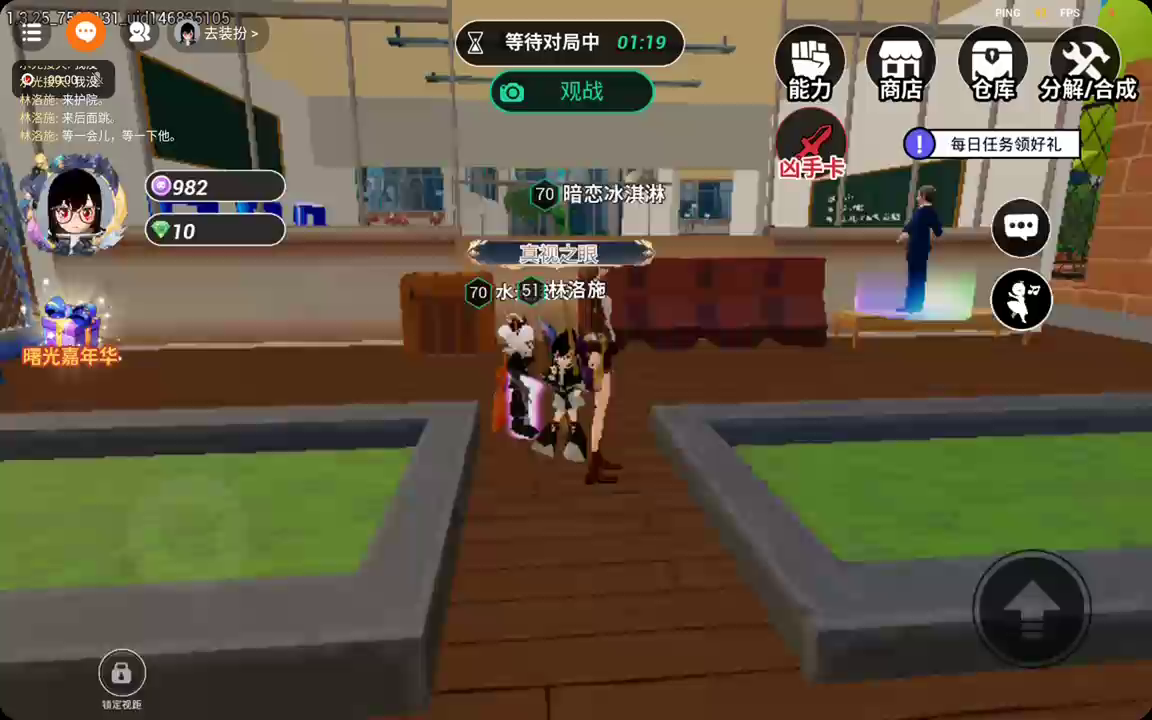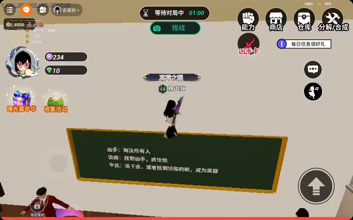 【更新公告】赛季通行证活动开启! 新增赛季通行证活动,活动期间完成每日任务和赛季任务可获得经验奖励,累积经验领取丰厚奖励 欢迎来到三年二班躲猫猫! 一群小伙伴来到一座废弃校园探险,惊扰了此处的冤魂,一名伙伴受冤魂影响化身恶灵展开追杀,其余人需要净化冤魂打开大门,从恶灵手中逃离此地。 在游戏中你可以伪装成场景中的物品躲起来,也可以在对局中使用道具干扰恶灵的行动帮助自己逃出生天。 赶快加入游戏,和小伙伴一起游玩吧!