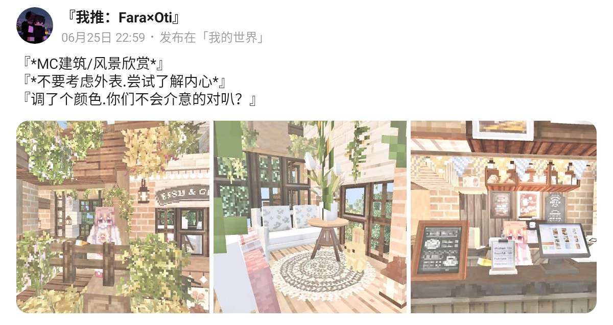 ◎哈喽哈喽!大家好,我是澪炘,一转眼又过了一周,各位MC的小伙伴们都放暑假了吧,大家在暑假里都过的怎么样呢?好啦,话不多说,快跟随我的脚步来观看本期MC小伙伴们的优质作品吧!
