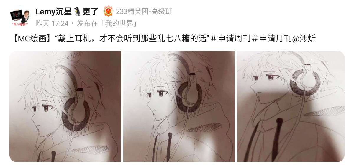 ◎未上周刊的小伙伴也非常优秀,你们的作品也非常优秀!如果你也想让自己的作品更上一层楼,请记得阅读并学习枳枳的创作课堂(帖子发布者233号:23054640)之后,再申请周刊,更容易上榜哦!