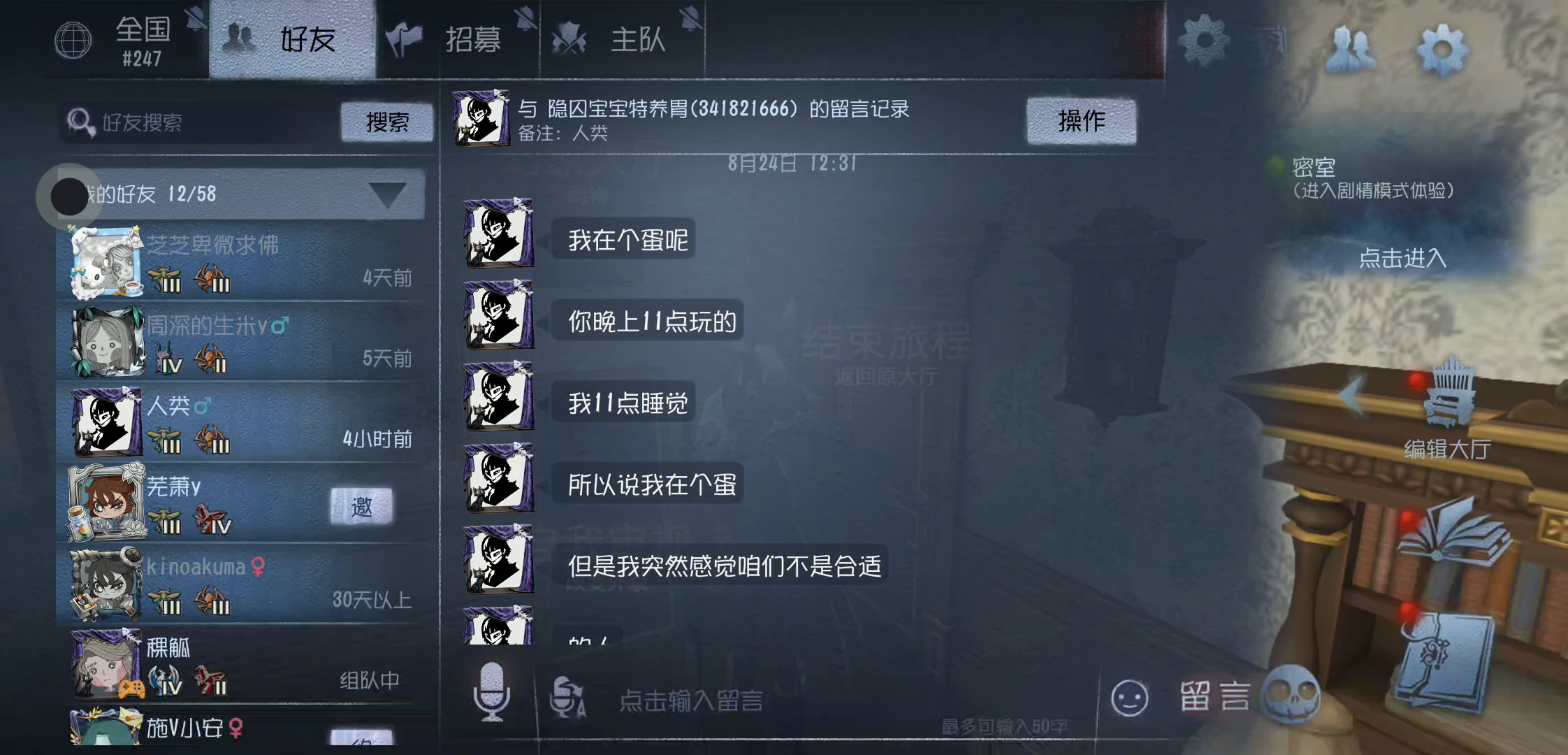 谁懂,刚才玩第五人格卡个要死,结果网刚好点,就发现自己到地下室了🙃