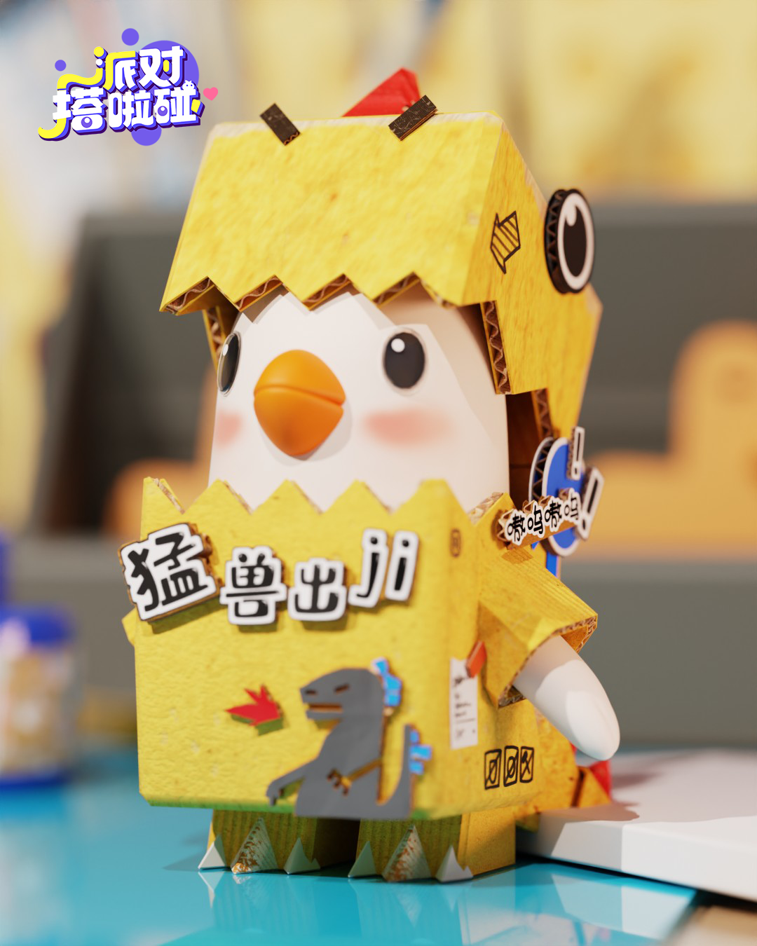 于是,它自制了一套恐龙纸箱,想让它的朋友们领略它“真实”的亚子!