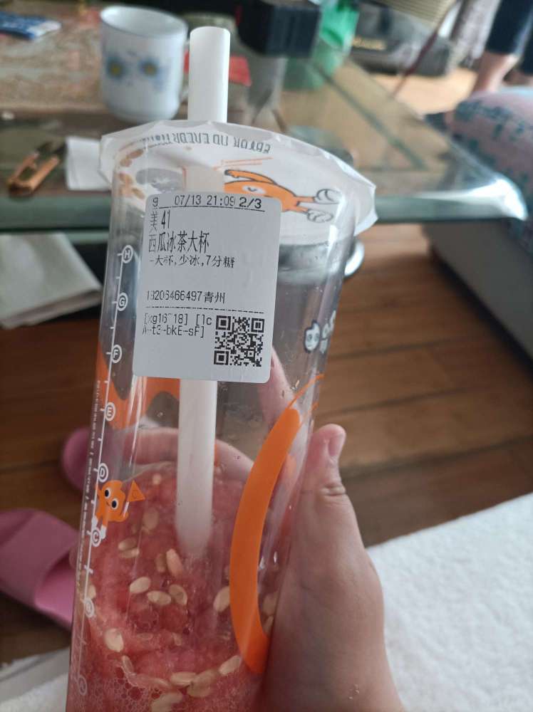 西瓜奶茶喝了一口,结果晕倒了