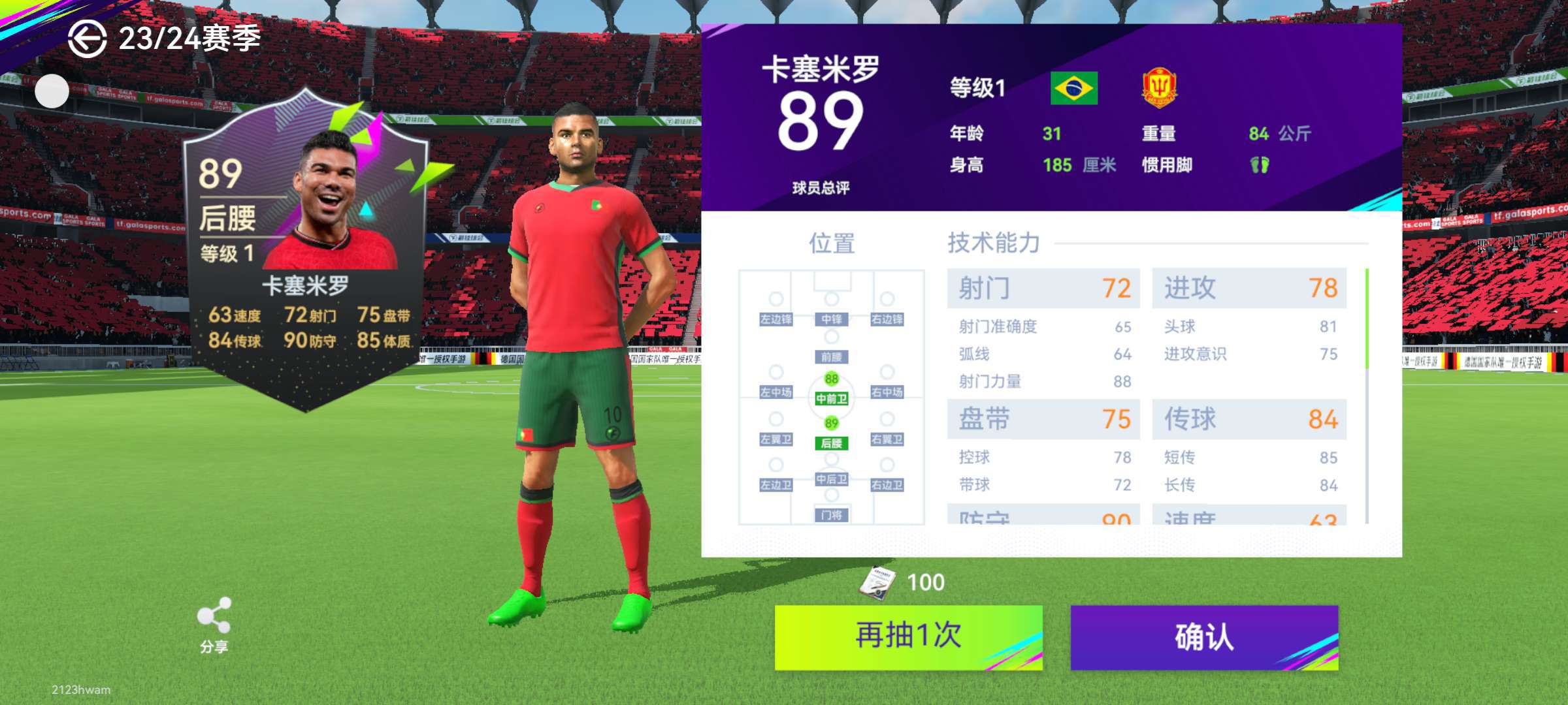 经纪人第一次出89+!!!!!!而且还是 卡塞米罗