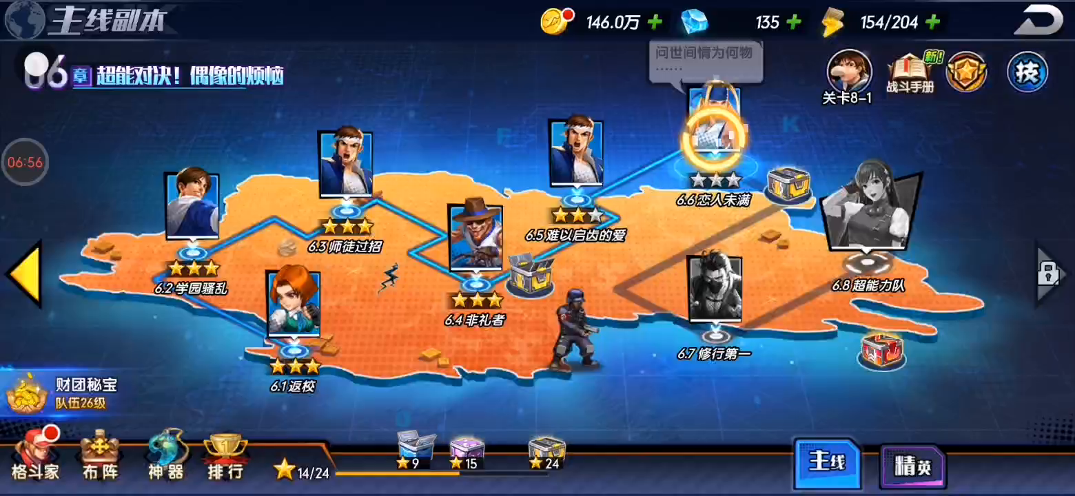 全新IP大作《拳魂觉醒》由正版《拳皇》IP授权,联动《侍魂》及《月华剑士》两大知名人气IP,更有【橘右京、娜可露露、霸王丸】的倾情加入,全新演绎拳皇全明星世界。 游戏涵盖了草薙京、特瑞、不知火舞等“拳皇”系列经典人气角色及橘右京、娜可露露等知名人物,独特核心战斗及创新竞技玩法使游戏区别于传统IP游戏,八大流派,二十余个战队,数十格斗家等待你收集,为屏幕前的你带来更新鲜的游戏体验。 【特色玩法】 一、拳皇侍魂系列IP剧情角色纯还原 以三神器家族及大蛇的恩怨故事为背景,橘右京等侍魂人物穿越而来,正逢拳皇大赛开办,一场跨时空的较量正在上演 二、卡牌标配升级,经典基础再创新 一改传统卡牌游戏回合制,创新地使用即时战斗形式,爽快的连击操作,拥有华丽特效及战略打断的必杀技使战斗更加激烈 三、系统融合打磨,多种乐趣一次体验 主角剧情模式一币通关,抢夺资源、占领城池的SLG玩法与卡牌结合......通过核心战斗创新提高游戏策略性,赋予卡牌游戏操作乐趣 四、多线养成,自由组建队伍称霸拳皇大赛 多样的养成线加丰富的培养玩法,让你随心所欲培养心爱格斗家至极限,自由组建最强战队