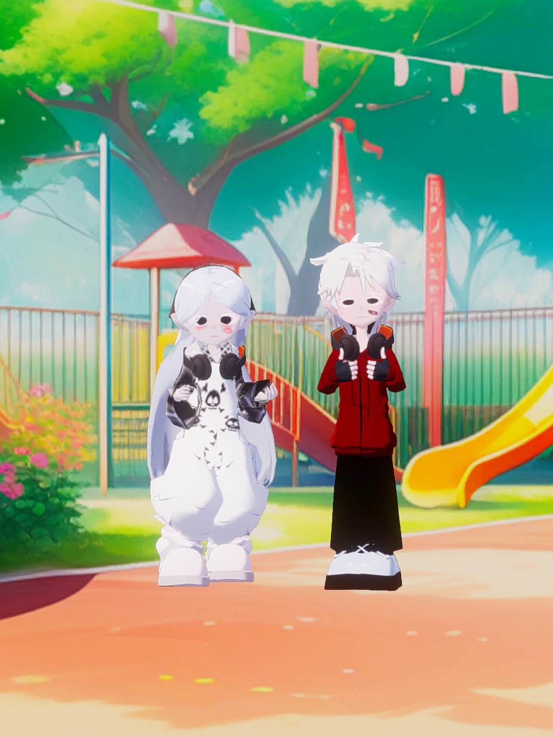 我:3,2,1,来吧〈背)想玩转圈圈吗? 你:(上〉好