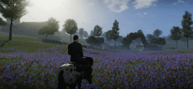 如果仔细观察,还能发现更多细节上的处理也很到位。比如马匹的建模也十分追求真实感,与之互动的动作也很丝滑。此外类似载具等模型,则与其他模型材质不同,更强调金属的质感和反光效果,也很贴近真实表现。