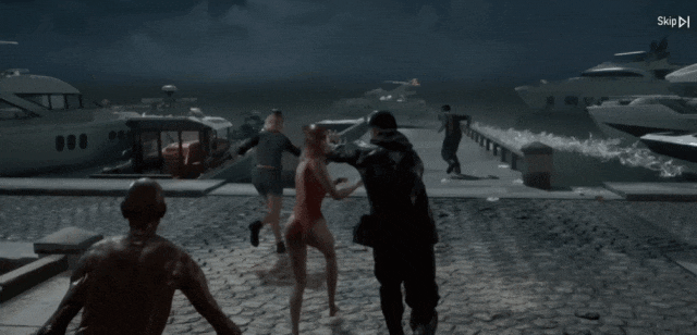 比如酒吧嗨皮、突然闪灯、丧尸突脸、尸潮袭来、罪犯夺枪……这几个操作几乎是玩家行走三五步之内就上演完整的内容。节奏十分夸张,但冲突感也很强,让人有种紧迫感,去不得不快速接受逃离、登船、抢夺、撞船、落水、登岛这一系列情节,这也就过渡到了游戏刚开始的地图了。