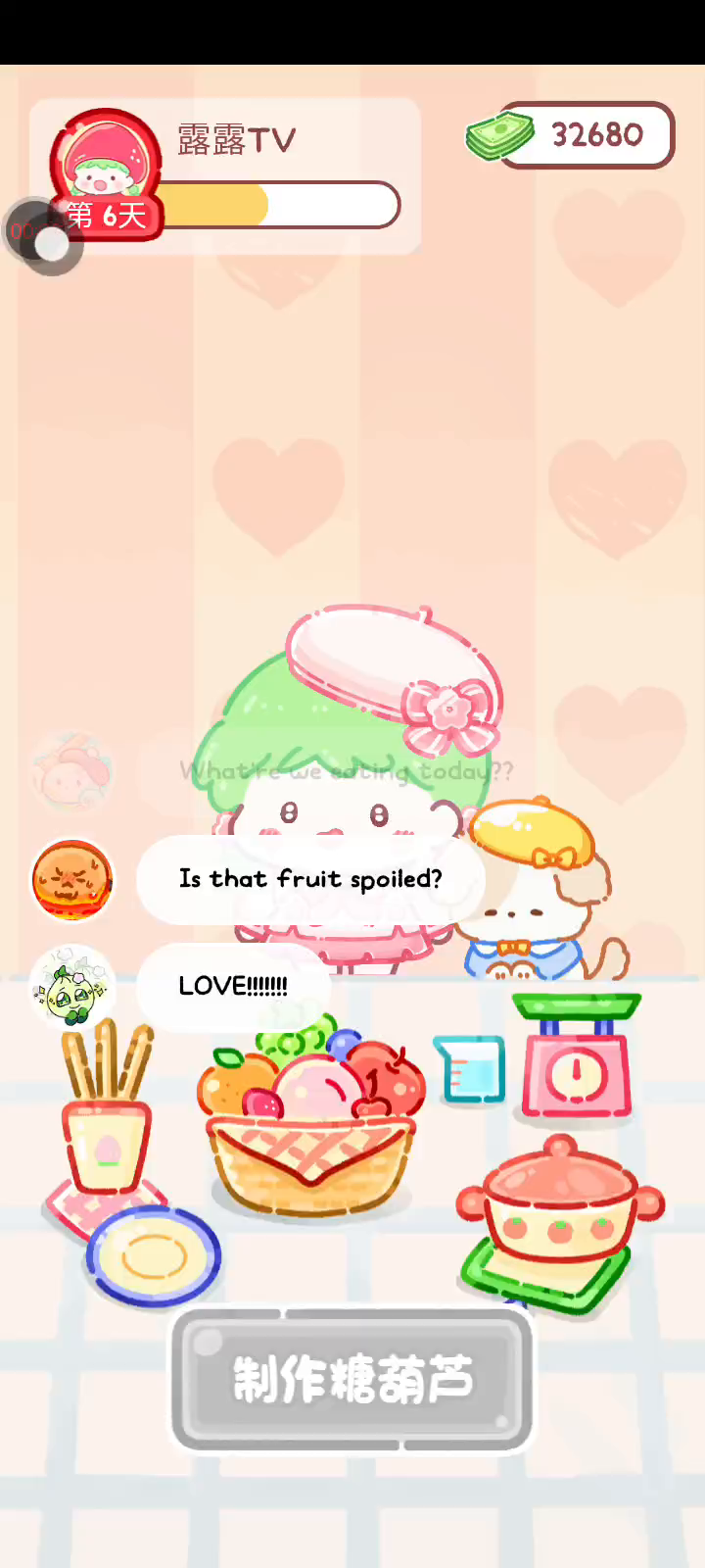 更新宠物!!! 「你进行草莓糖葫芦吃播的话,我就赞助100元。」 「脆口的声音太迷人了(°θ°)」 由于客人都被最近新开的许多糖葫芦店家抢走,曾经号称糖葫芦达人的父母因此卧病在床。 继承父母店面的主角露露开始糖葫芦吃播来宣传店面。 直到成为真正的糖葫芦达人那一天! 「今天我也要开始糖葫芦直播罗!( •o• )」 [串材料] 只有新鲜的水果的话,很难以一名吃播实况主存活下来。还要有松饼、地球软糖、青阳辣椒!利用奇特的材料制作糖葫芦吧。 [裹糖衣] 将材料串满竹签的话,就放进锅子搅动吧。唯有利用达人的秘法,才能裹出又薄又脆的糖衣。 [即时吃播] 咔哒咔哒!今天的吃播也大成功。热烈的聊天内容看起来反应也不错。看来得利用完成观众任务得到的赞助金来买新材料了! 来,准备好了吧?现在就马上挑战成为糖葫芦达人吧!