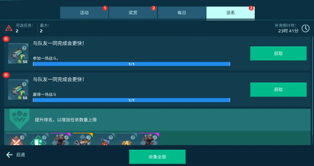 需要注意的是,派系任务栏有容量上限,在完成当前任务的基础上,“补充倒计时”结束后该任务栏则会发布下一个“钍”任务;若没有完成,则该任务栏在倒计时结束后不会刷新新的任务哦~指挥官们记得完成每日派系任务,别错过积攒“钍”的机会。