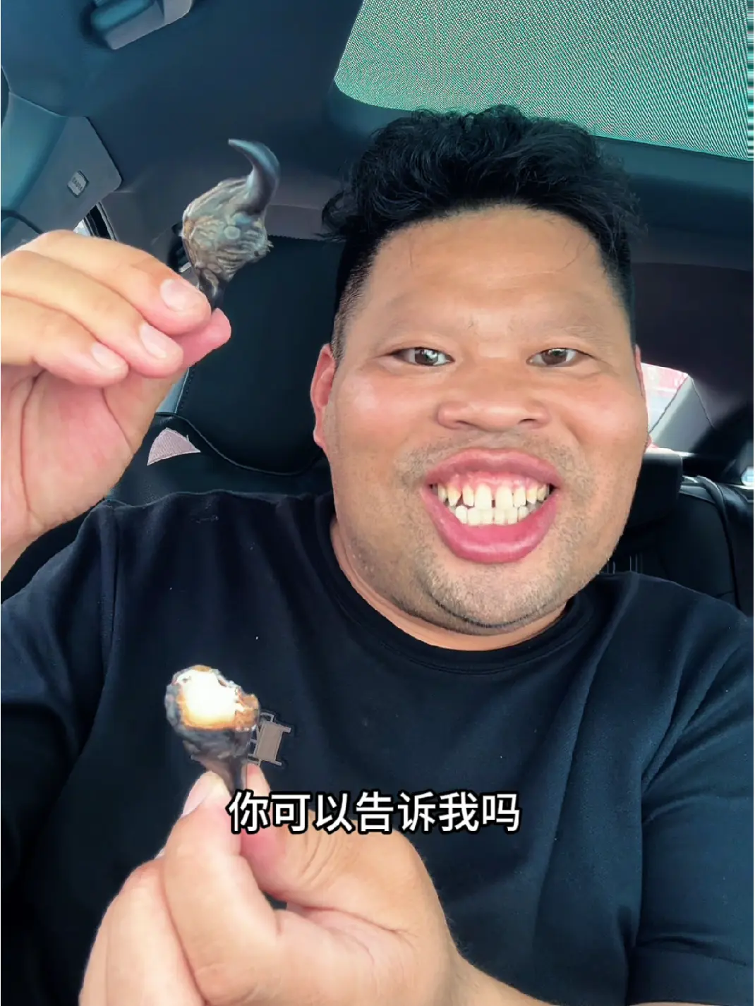 博主在车内分享自己吃卤鸭腿的吃货日常,向粉丝安利这款卤味零食,看起来十分美味。